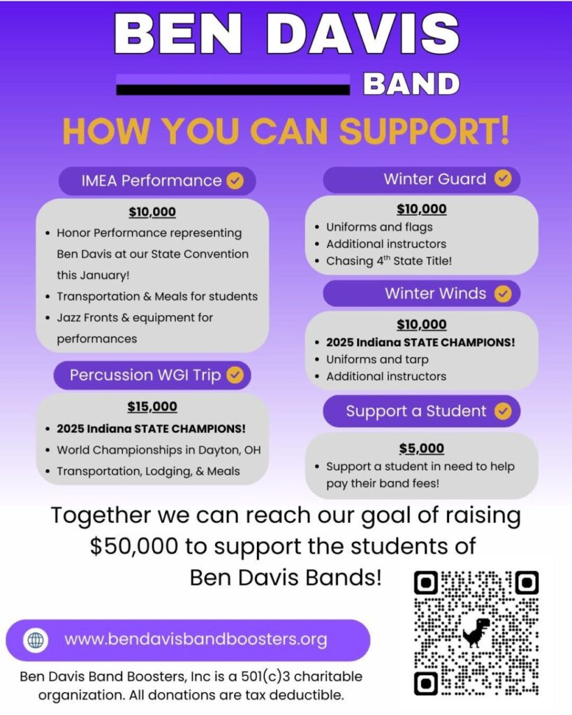 Together we can raise $50,000 to support the students of Ben Davis Bands! We are raising funds to provide amazing experiences to these talented students! Your donation, no matter how big or small, will go a long way to helping the program you love!